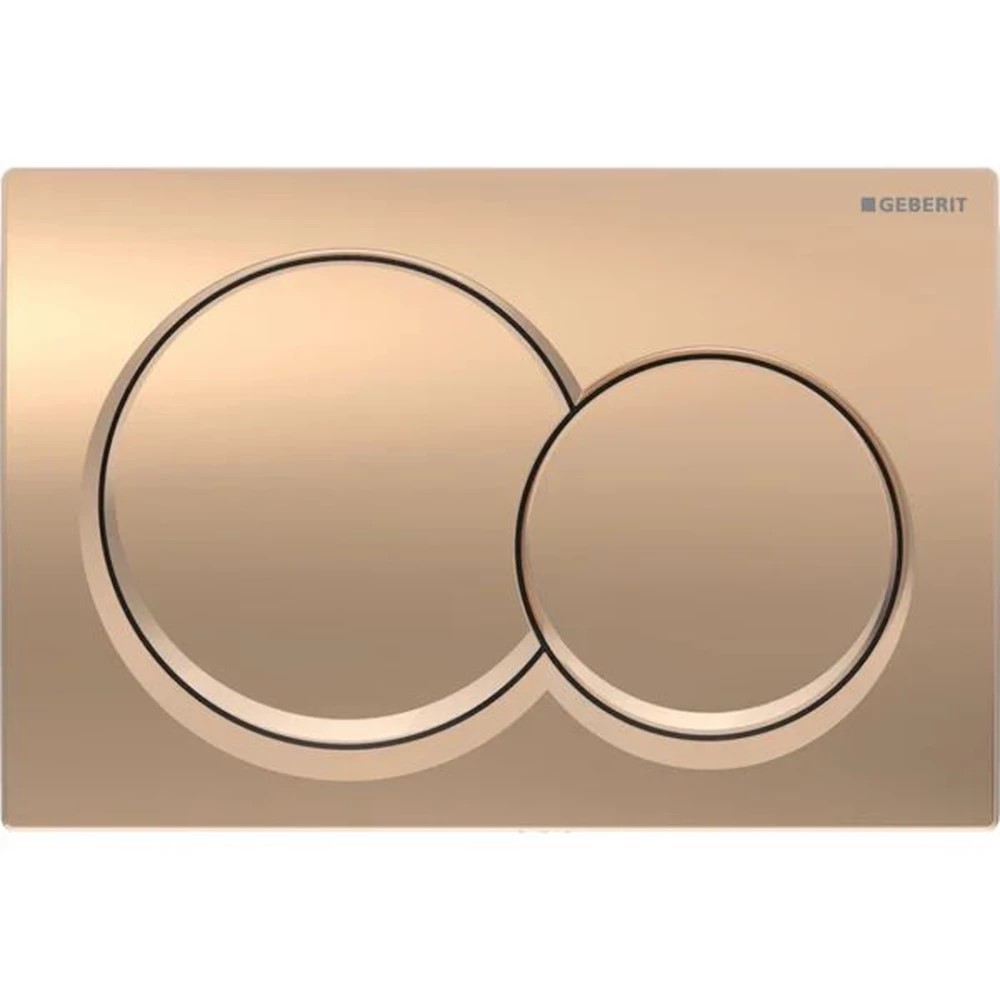 Geberit Alpha01 Actuator Plate – Red Gold. Add a touch of luxury to your bathroom with the Geberit Alpha01 Actuator Plate in Red Gold. Designed for dual-flush systems, this elegant actuator plate combines premium craftsmanship with timeless style, making it a perfect statement piece for modern and sophisticated spaces. Featuring two round flush buttons, the Alpha01 actuatorplate offers efficient water-saving dual-flush functionality while maintaining a sleek, refined appearance. The striking red gold finish exudes warmth and opulence, perfectly complementing contemporary fixtures and high-end interiors. -Dual-flush system helps save water while providing convenient control. -Round buttons in a striking red gold finish add a touch of elegance to any bathroom. -Durable, high-quality Geberit materials ensure long-lasting performance. -Designed to work seamlessly with Geberit Alpha concealed cisterns. -Backed by a 5-year warranty for lasting confidence and reliability.